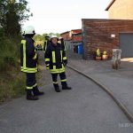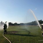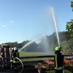 Stephan teilte uns zum Aufbau einer Löschwasserversorgung und zur Brandbekämpfung ein. Das Wasser entnahmen wir einem Hydranten. Der war allerdings sehr schwer zu finden. Denn das Hinweisschild war zugewachsen. Im Ernstfall würde das wertvolle Zeit kosten. Da bitten wir doch alle Mitbürger, die einen Hydranten vor dem Haus haben, auch dafür zu sorgen, dass dieser zugänglich ist. Von der schnellen Wasserversorgung kann viel abhängen. Darüber sollte sich jeder Gedanken machen.