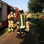 Einsatzort war „Kanal 33“. Angekommen stellte sich heraus, dass es sich um eine Übung handelt. Die Einsatzleitung hatte Stephan Denker von der Feuerwehr Schafstedt. Mit uns am Einsatzort waren die Feuerwehren aus Albersdorf und Tensbüttel-Röst. Die angenommene Lage war eine Explosion eines Gasgrills mit anschließendem Gebäudebrand.