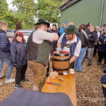 Die Feier fand den Abschluss in der Festhalle. Hier musste Bürgermeister Stefan noch ein Bierfass anschlagen, um die Boßler alle zu versorgen. Das Anschlagen des Fasses war dann nicht so einfach. Ist dann aber gut gelungen. Das Bier schmeckte umso besser nach dem Straßenboßeln. Dazu gab es eine Suppe. Es wurde noch bis spät in die Nacht zusammen gesessen. Es war dann auch der letzte Abend mit den Eggstättern. Am Montagmorgen um 5.00 Uhr war Abreise.