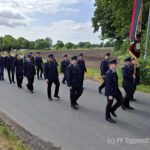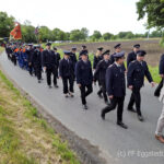 Der lange Umzug bestehend aus den Abordnungen der Feuerwehren, unseren Gästen und sehr vielen Feuerwehrfahrzeugen ging durch das Dorf. Viele Häuser bzw. Straßen an der Umzugsstrecke waren geschmückt. So wurde Eggstedt noch schöner und konnte die vielen Gäste begeistern. Danke an alle, die geschmückt haben.