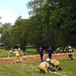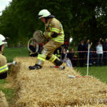 Es traten immer zwei Wehren gegeneinander an. Entschieden wurde nach der schnellsten Zeit, bis die Übung beendet war. Das war das Kippen einer „Flamme“ aus Holz, die mit dem Wasserdruck aus dem Schlauch gekippt werden musste.